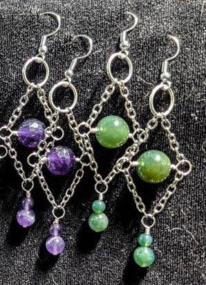 Delicate yet bold, these gemstone earrings with moss agate stones measure 2 1/4" from the bottom of the ear wire, which is sterling plated and hypoallergenic.